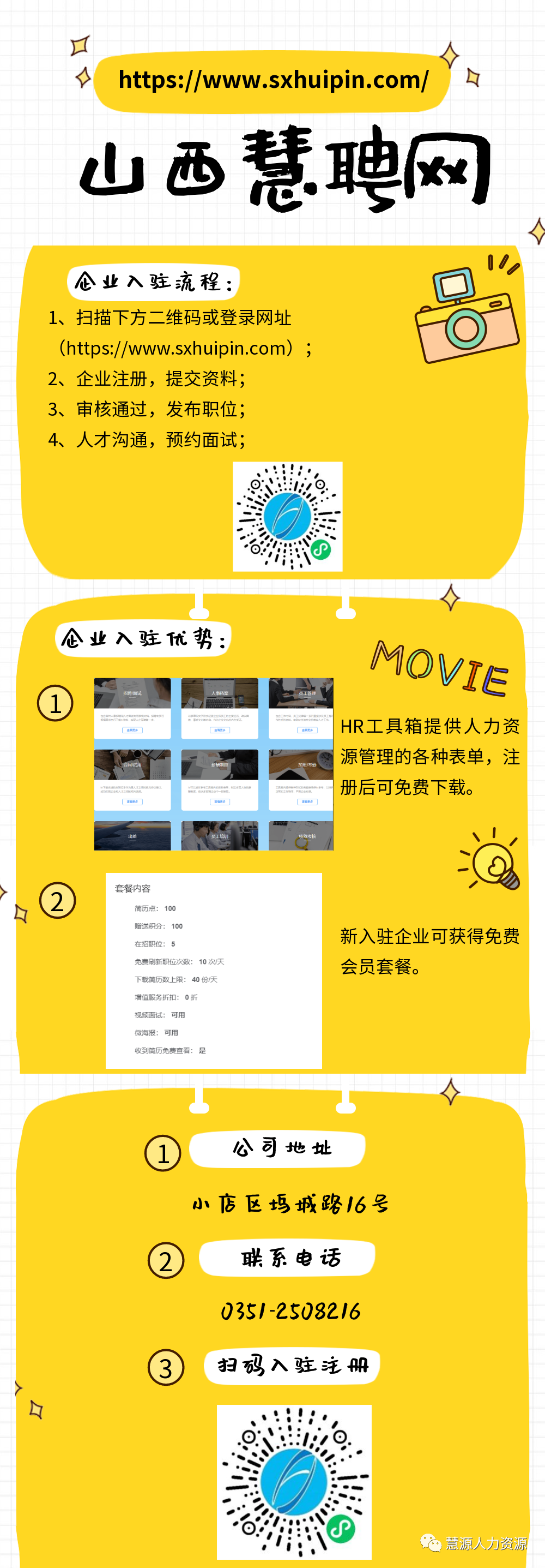 山西慧源人力資源集團有限公司作為人力資源行業的踐行者和推動者,已深耕人力資源服務業17載,立足山西,服務全國,形成了標準化、專業化、數宇化的服務體系。為響應國家就業政策,積極搭建求職者和用人單位之間的的溝通橋梁,推進網絡招聘健康發展,促進人力資源合理流與配置, 我公司現推出山西慧聘網(//www.sxhuipin com/)。