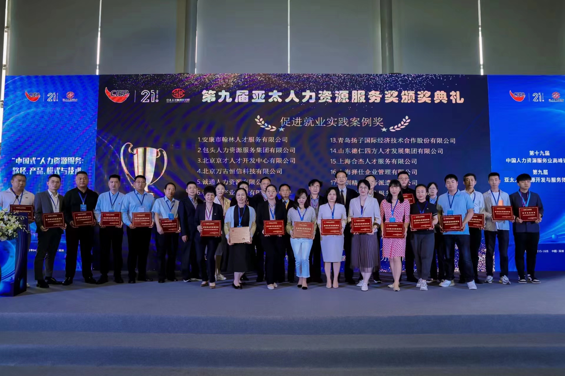 在“第九屆亞太人力資源服務獎”頒獎儀式上,慧源人力資源集團憑借社會價值貢獻和優質服務能力,連續三屆榮登榜單,斬獲“促進就業實(shi)踐案例獎(jiang)”“優(you)秀企業家獎”兩(liang)項大獎(jiang)。此(ci)次(ci)慧源人力資(zi)源集(ji)團榮獲兩(liang)項大獎(jiang),既是品牌實力與品牌價(jia)值的體現,也代表(biao)了社會(hui)各(ge)界(jie)對慧源人力資(zi)源集(ji)團踐行(xing)社會(hui)責任(ren)和助推(tui)社會(hui)進步方(fang)面的認(ren)可(ke)。