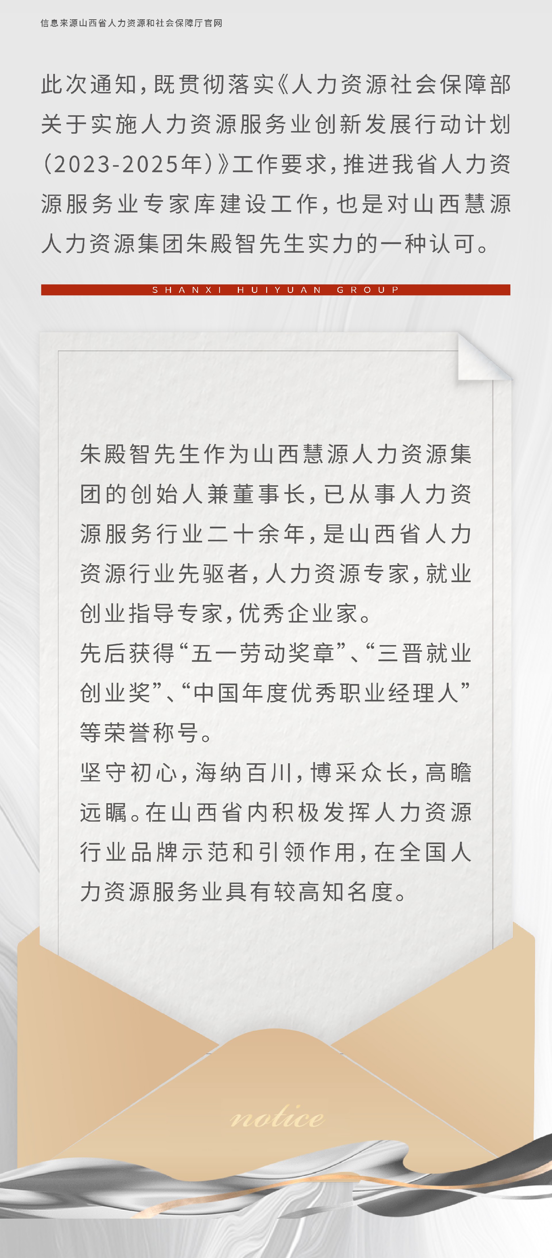 我司董事長朱殿智被聘為山西省人力資源服務業專家庫入庫專家