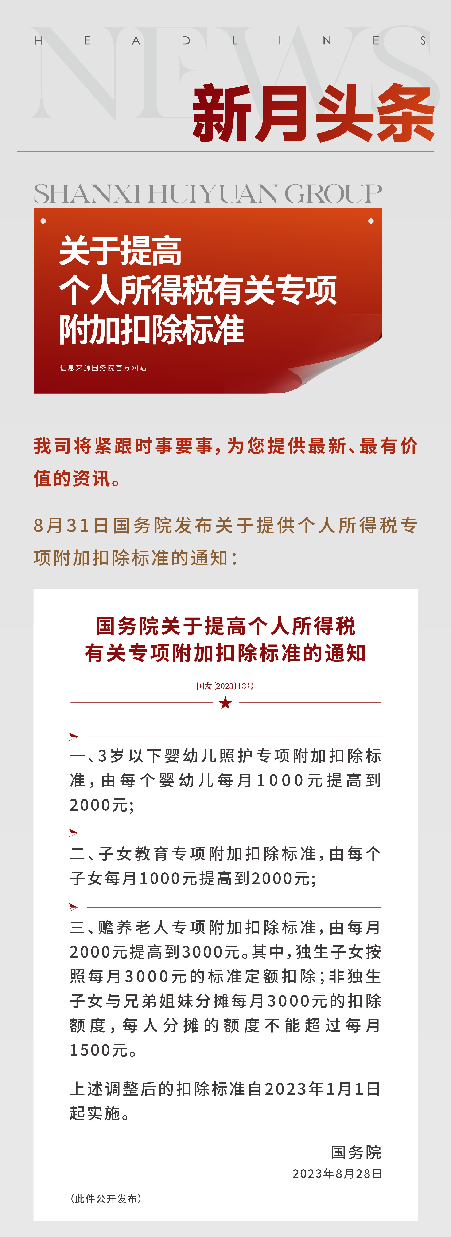 國務院發布關于提高個人所得稅有關專項附加扣除標準的通知